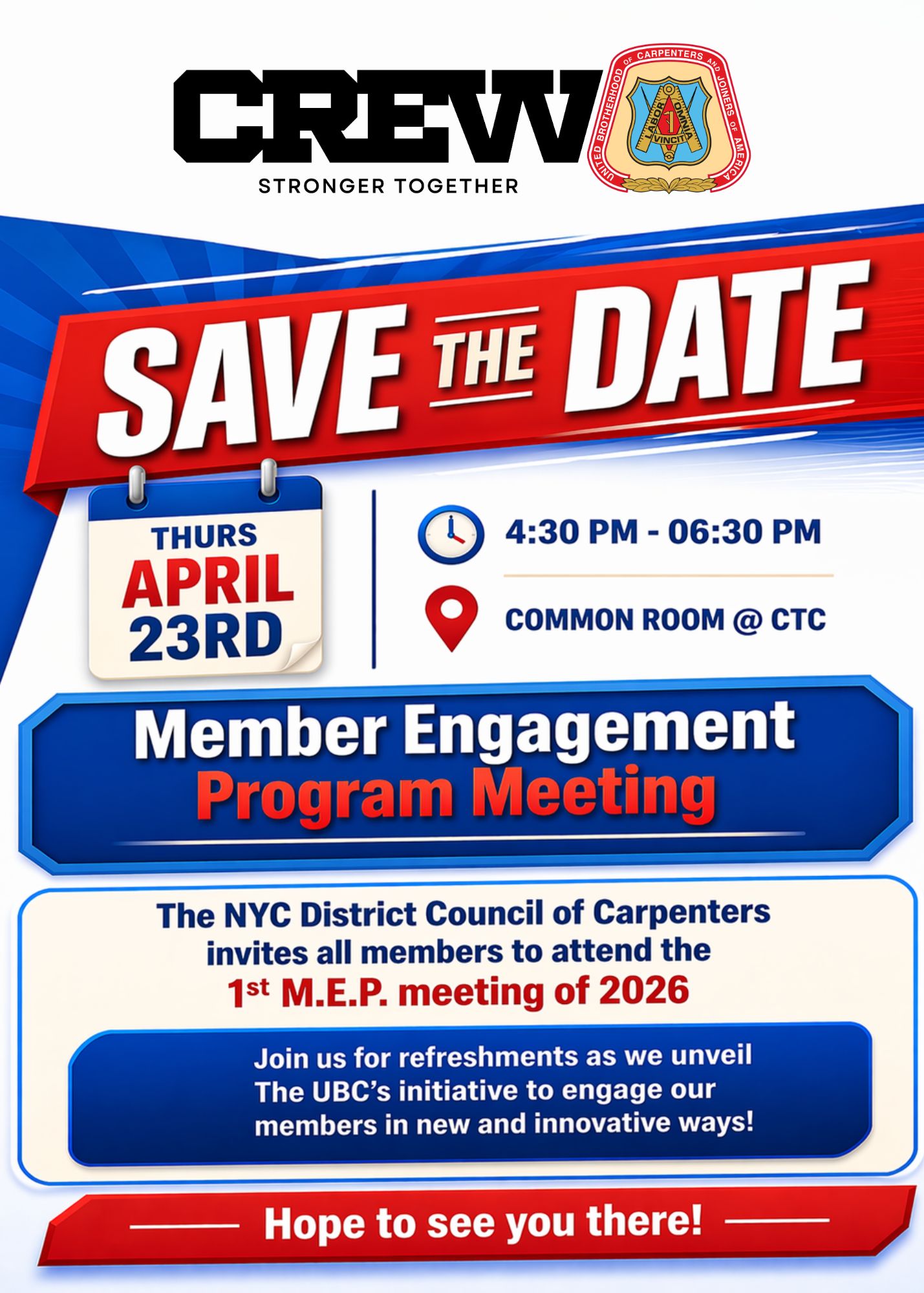Save the Date! The 1st M.E.P. Meeting of 2026 is happening April 23rd at 4:30 PM @ the CTC Common Room. Come hear what’s next, connect with your brothers & sisters, and enjoy some refreshments. Don’t miss it.